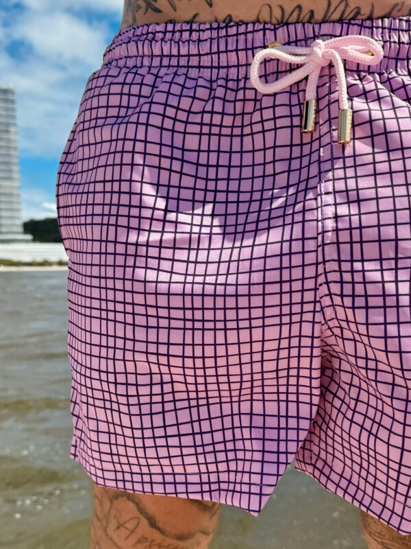 As estampas com essa pegada geométrica discreta, trazem a versatilidade da moda atual, um shorts com corte perfeito que lhe permite tanto usar na praia como uma peça de banho, quanto para um almoço com camiseta e tênis e até mesmo com uma camisa de linho.